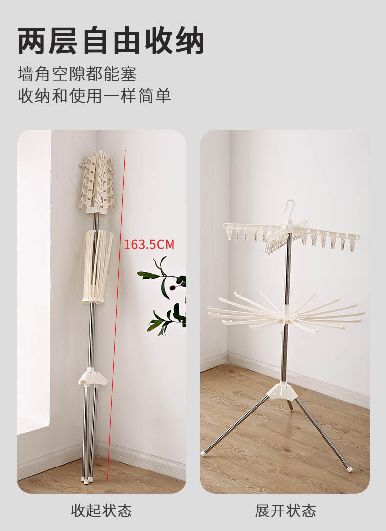 規(guī)格:二段/三段不銹鋼立式衣架,二段